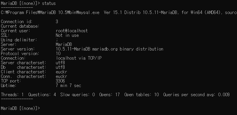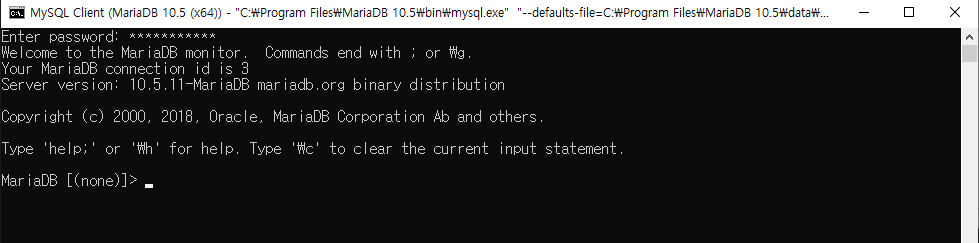 root로 로그인을 하는 것이며, 설치하면서 넣었던 비밀번호를 입력한다