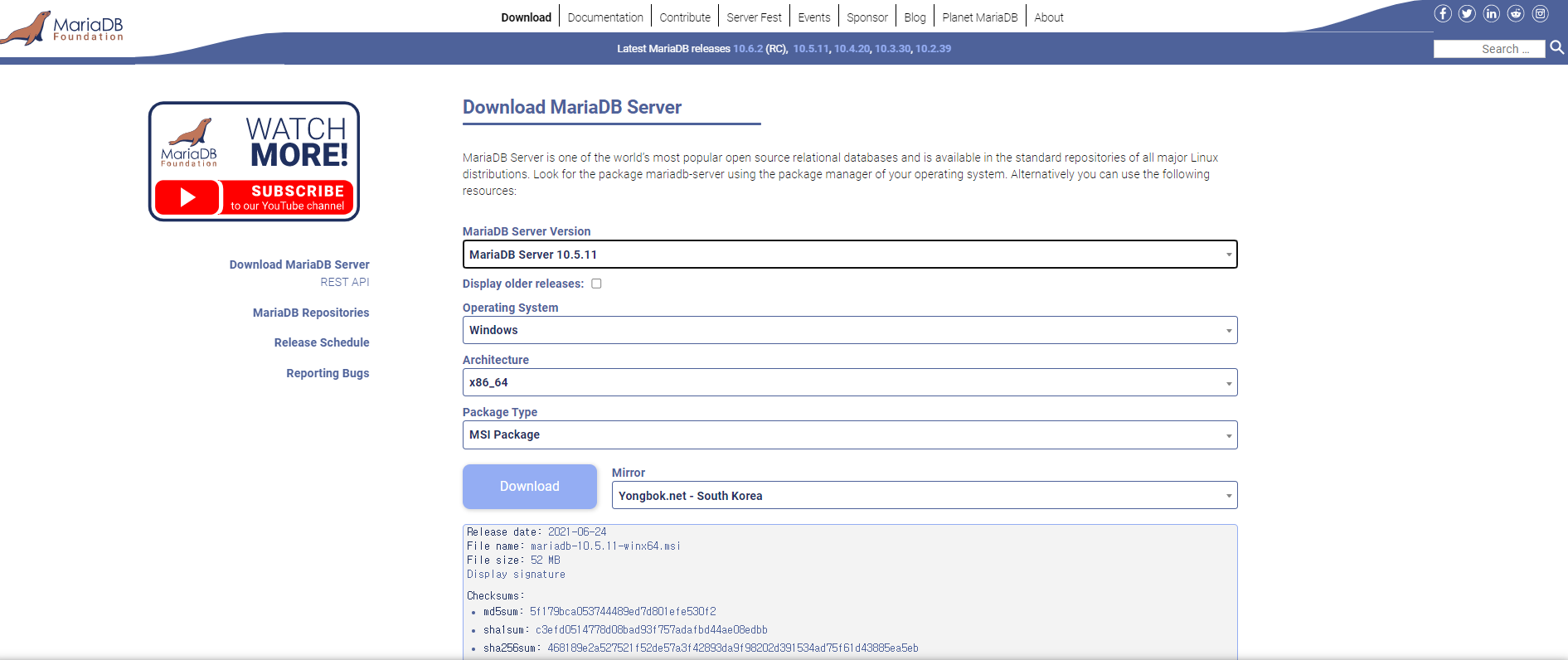 Step1 : 마리아DB 설치 파일 다운로드하기