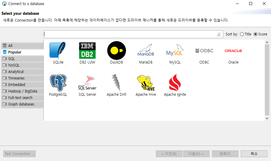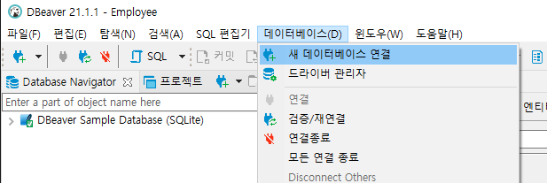 '데이터베이스 > 새 데이터베이스 연결'클릭