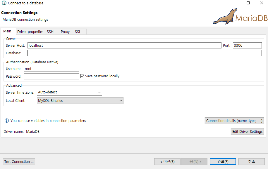 현재는 Mariadb를 연결할 것이기 때문에 Mariadb를 클릭한다.
