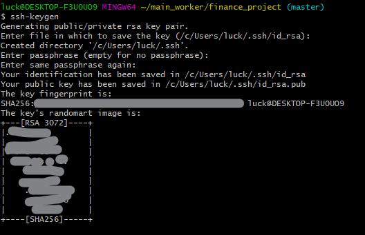 Your public key has been saved in /c/Users/luck/.ssh/id_rsa.pub //public 키생성