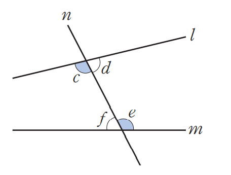 서로 다른 두 직선 l, m과 다른 한 직선n이 만나서 생기는 각 중에