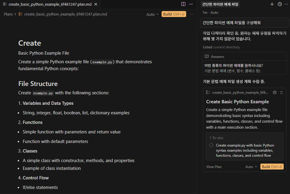 자동으로 플랜을 짜고 빌드를 선택했더니 아래와 같이 코드 생성