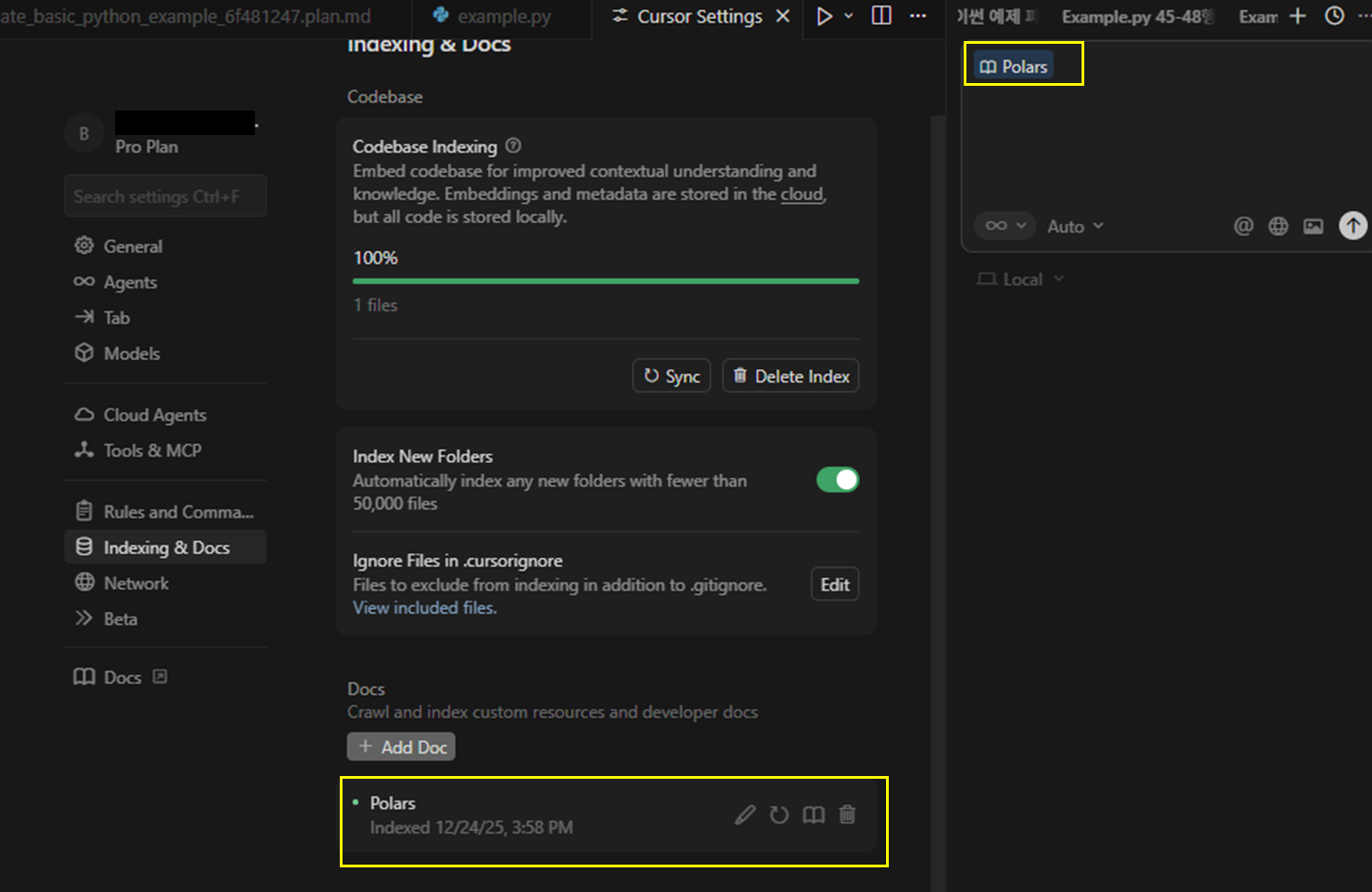 - 커서에서는 모든 코드베이스의 파일을 인덱싱하여 코드를 작은 덩어리로 분할하여 관리되기 때문에, 여러 파일의 코드를 한 번에 설펴볼 수 있다.