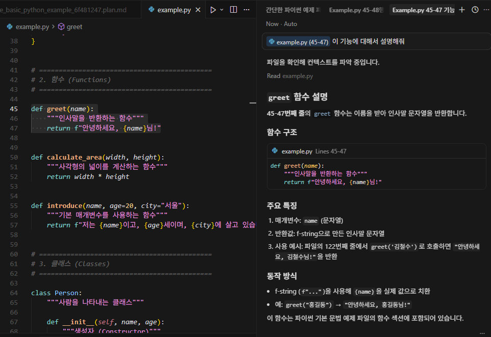 간단한 파이썬 예제 파일을 구성해 달라고 하니,