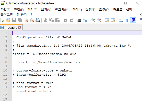 [참고] "C:\mecab" 으로 꼭 해야 하는 이유 MeCab을 윈도우에 설치하기 위해 기본 path 셋팅이 고정되어 있기 때문입니다. 만약에 변경을 하고 싶은 경우에는 1) 'mecabrc' 파일에서 'dicdir = 경로' 수정 ![]() 2) 'libmecab.dll'을 내가 설정하고 싶은 경로로 재컴파일링한 파일로 교체해주면 된다. => 소스는 'https://github.com/Pusnow/mecab-ko-msvc/releases/tag/release-0.9.2-msvc-3'의 'Source Code.zip'을 활용하면 되지만 이런 과정은 비추다. 아래의 config에서 '"libexecdir/mecab"'로 설정되어 있는 dir을 모두 변경하고 바이너리 파일로 만들어야 하기 때문이다. ![]() |